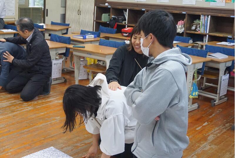「休み時間に教室で倒れた児童がいる」という設定で、先生役、児童役などにわかれての想定訓練をしました。