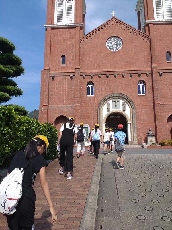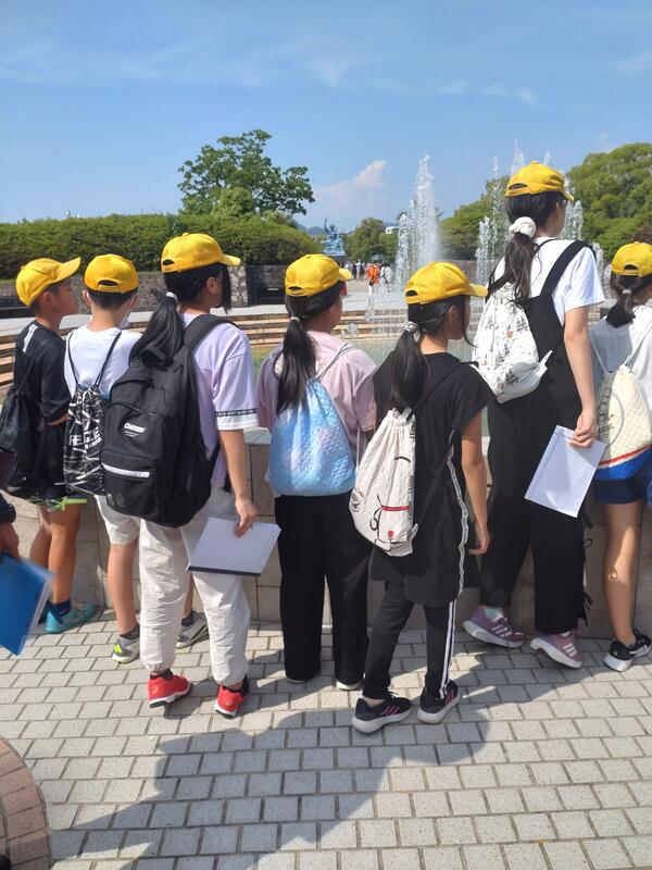連合小学校は、原爆資料館を見学した後、フィールドワークです。