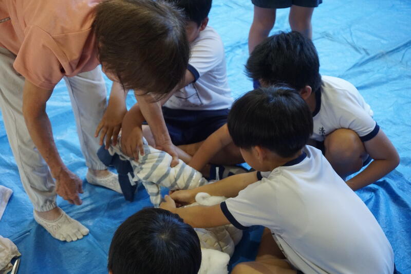 9月6日(金)3,4時間目、体育館で、4年生が、地域の方をゲストティーチャーとしてお招きし、かかし作りをしました。