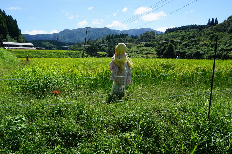 とても個性的で、素敵なかかしができあがりました。しばらく校内に展示した後、田んぼにたてました。