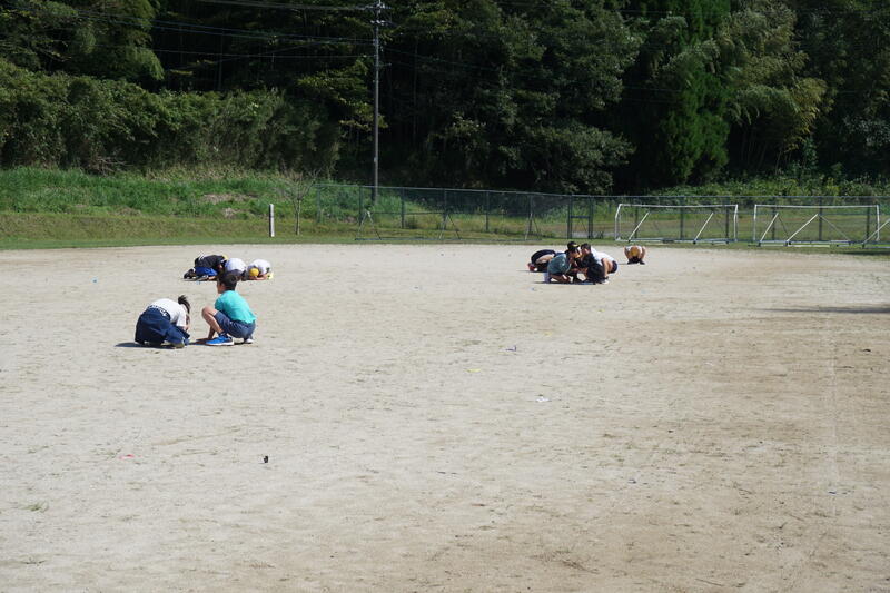 今回は事前の予告なしに、しかも好きな場所で、自由に過ごしている昼休み時間に行ったので、子どもたちは少しとまどっていたようでした。運動場では、高学年の児童が緊急放送を聞いてすぐに、「ダンゴムシのポーズ」をとり、じっとしており、それをみた低学年の児童が真似をして、うずくまっていました。