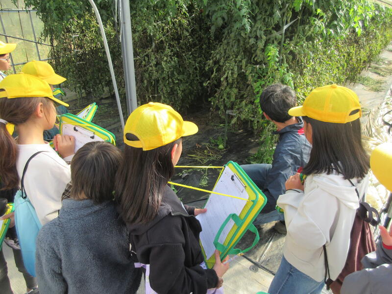 11月7日(木)午後、保護者でもあるトマト農家さんのハウスに、3年生が社会科見学にでかけました。
