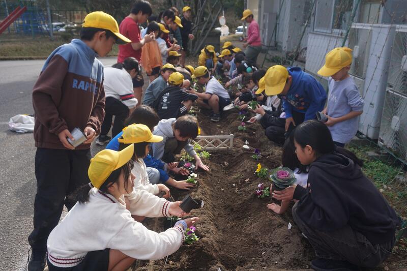 12月19日(金)昼休み後に、縦割り班ごとに、花壇に花の苗を植えました。