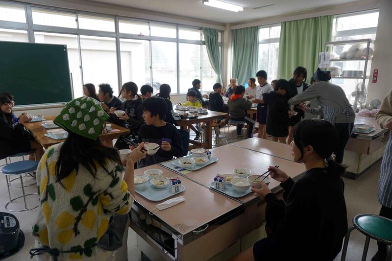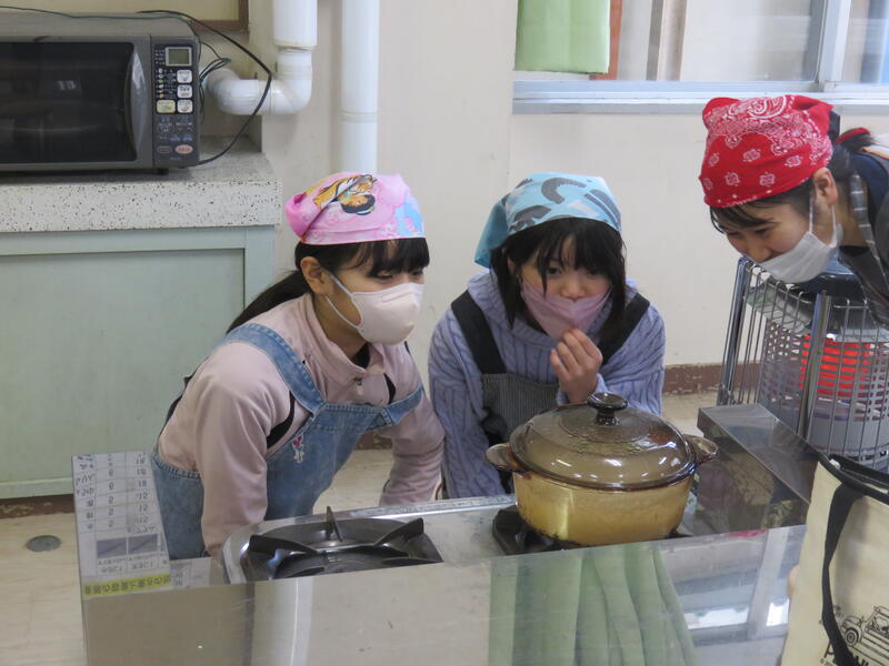 ごはんが炊き上がり、家庭科室からはいい匂いがします。