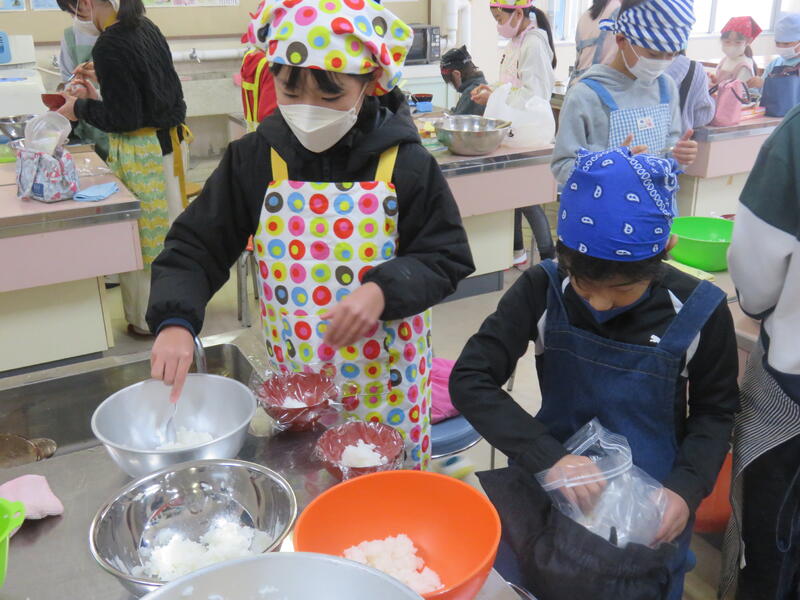 1月15日(水)3,4年生が秋に収穫したお米を使って、おにぎりパーティーをしました。