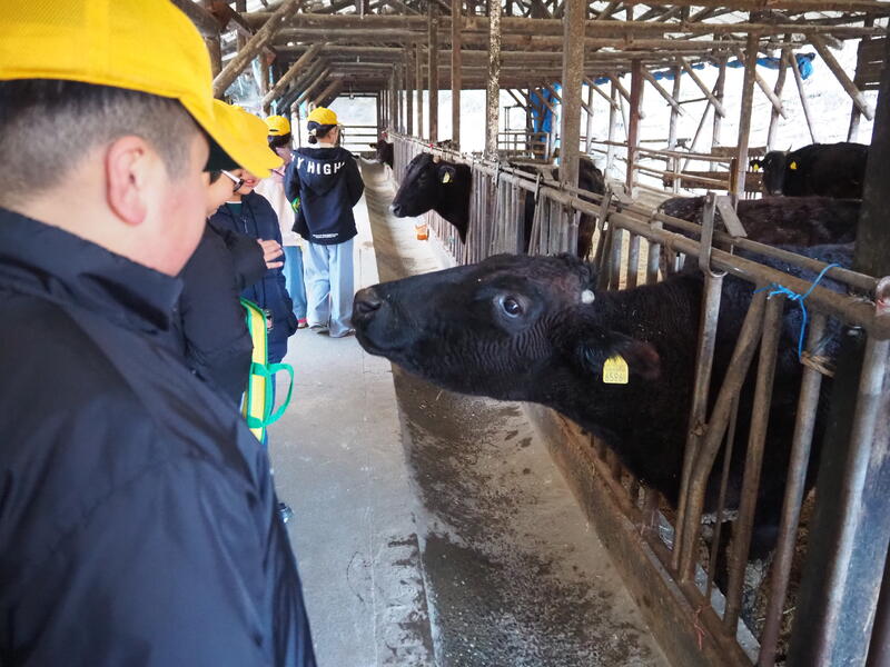 まずは、保護者の方のご協力で、飼育されている牛の見学です。(かわいいですね♪)