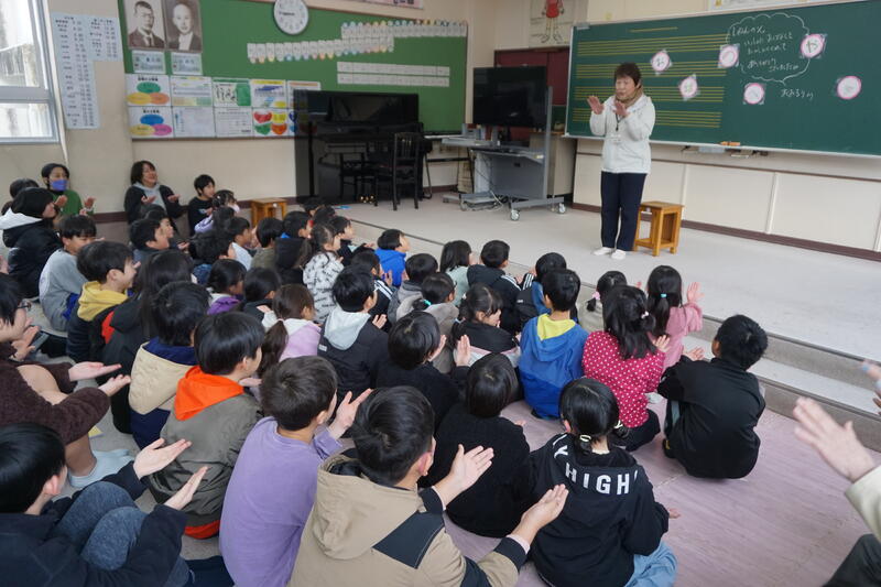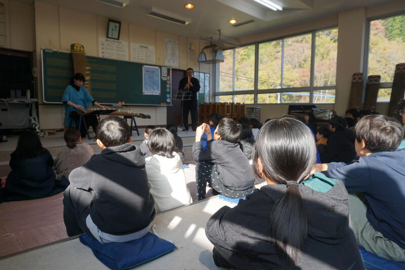 後半は、4,5年生が実際に和楽器の演奏に挑戦しました。なかなかきれいな音を奏でるのは難しかったようですが、貴重な体験ができたようです。