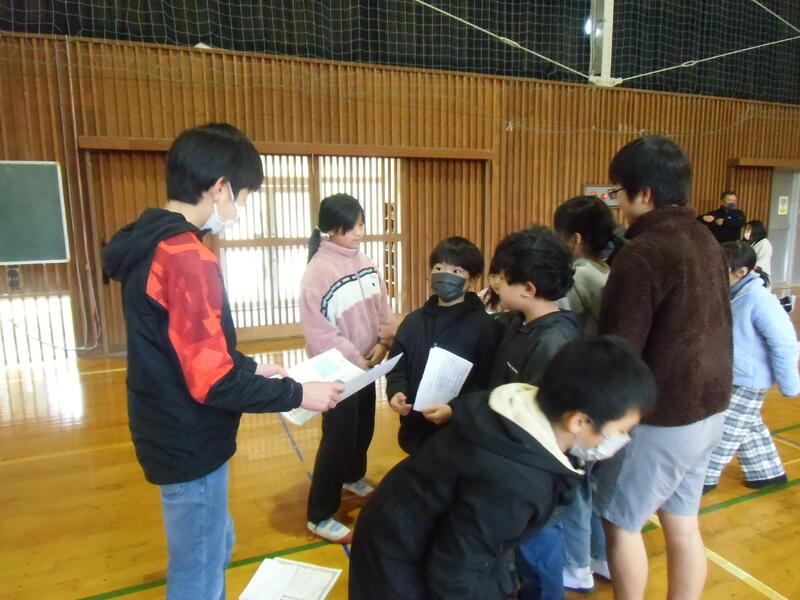 縦割り班のメンバーに1~10までの番号をランダムに割り振り、運営委員さんが言った番号(ナンバー)の人が中央に集まり、じゃんけんをして、勝ったら自分の班に戻るというものです。