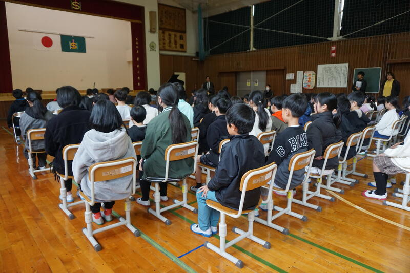 その後、校長先生から、夢に向かって頑張ってほしいことや、先日実施した「心のアンケート」で気になったことについてのお話があり、子どもたちはしっかりと聞いていました。