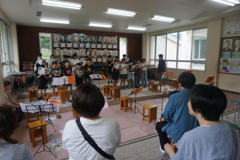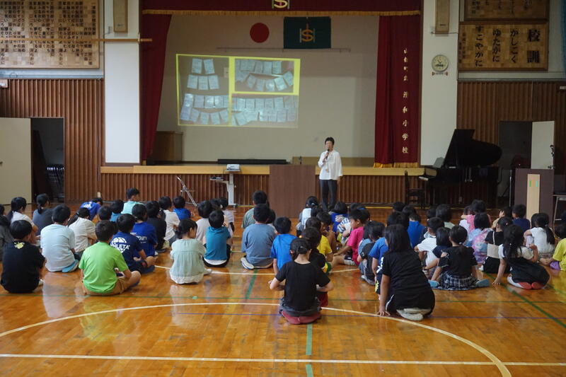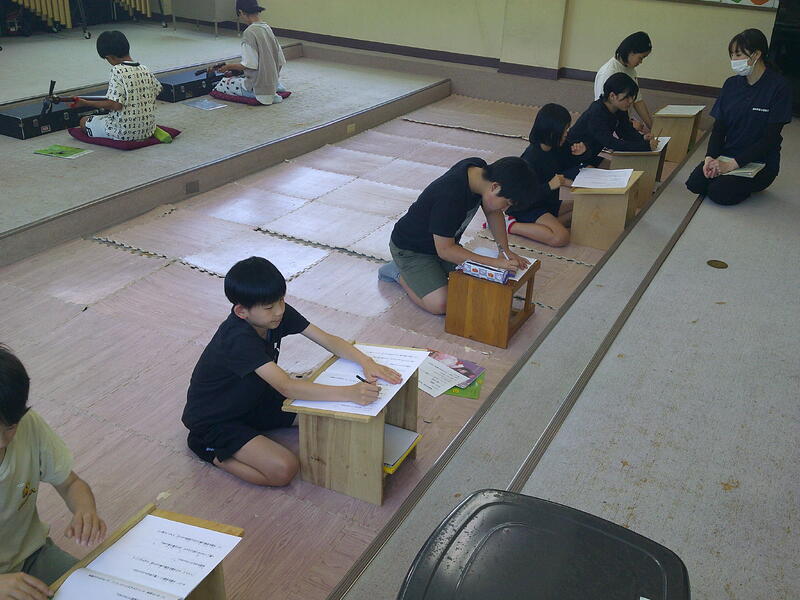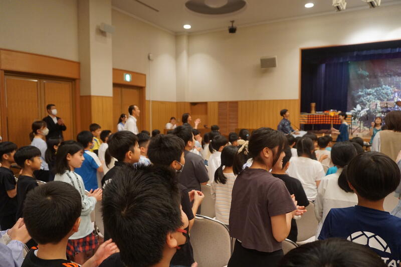 児童からは、「”雨の水前寺にて”という曲では、お琴の音で雨がたくさんふっている水前寺の風景が頭に浮かびました。」「尺八はリコーダーとにているので、音はでるだろうと思ったけど、全然できなかったので、講師の先生はすごいなあと思いました。」などの感想がありました。