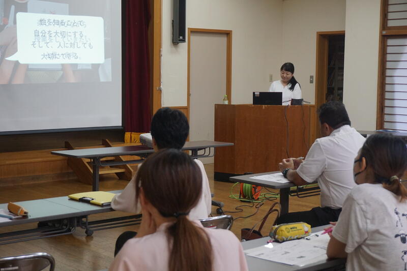 7月25日(金)18時から、清和集落センターで、清和地区合同保健委員会がありました。今回は山都町青少年健全育成町民会議との共催で、子育て講演会も実施しました。