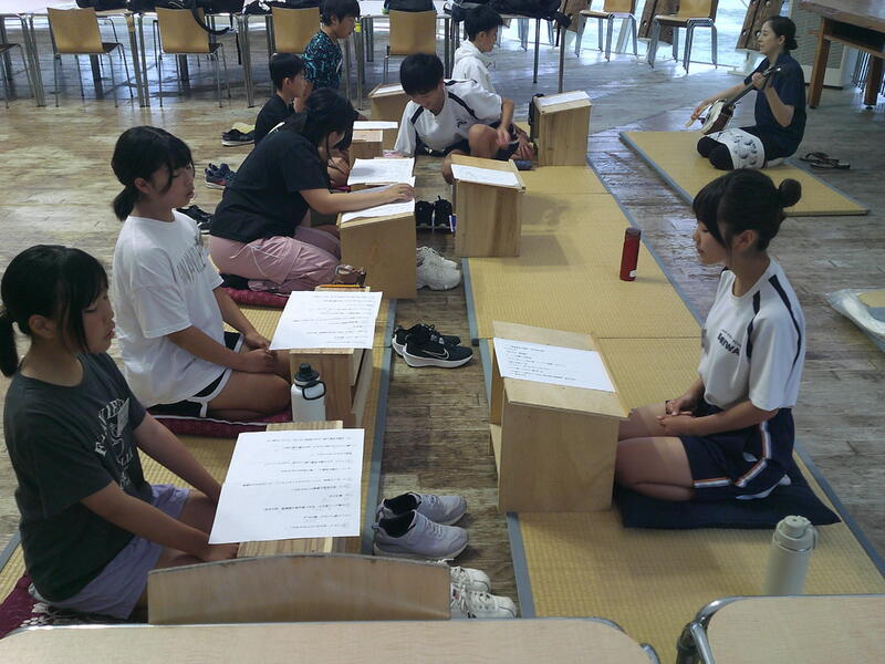 ↑ 昨年、同じ演目をおこなった、中学1年生の生徒からも教えてもらいます。