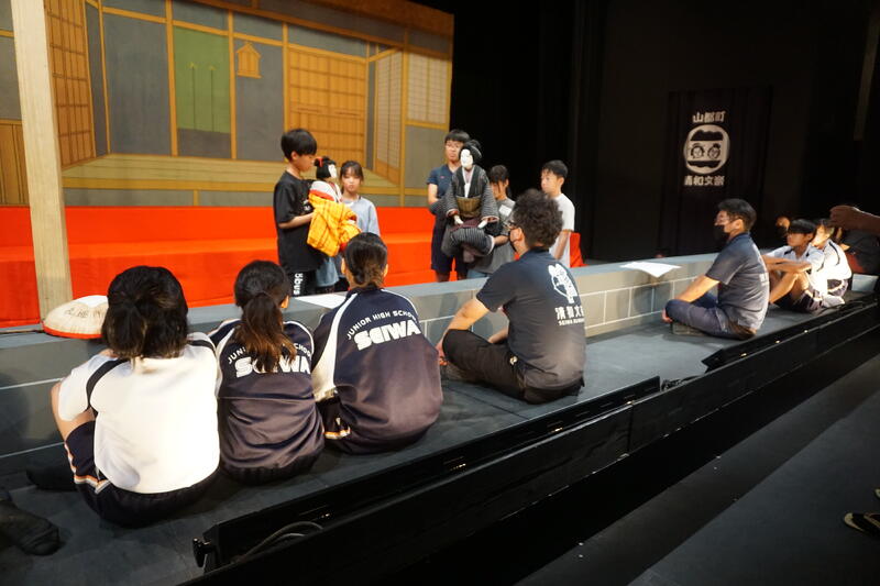 8月7,8日、文楽館で「文楽講座」がありました。2日間、中学生と文楽館の方からしっかりご指導していただきました。
