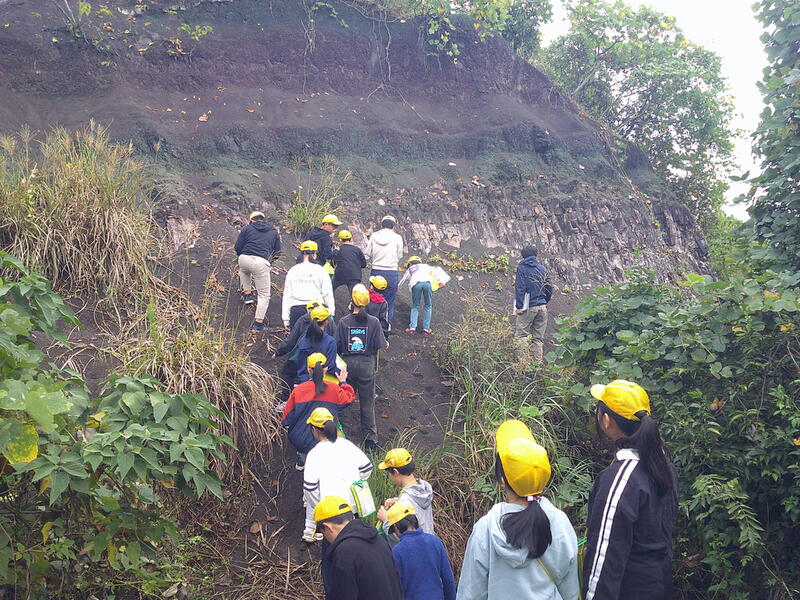 10月23日(木)、6年生が理科の学習として、御船恐竜博物館に出かけました。最初に白旗地区の地層見学に行き、実際に土や岩にさわってみたり、スケッチしたりしました。