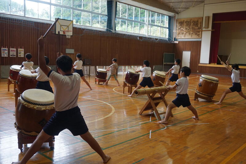 10月31日(金)、5時間目、明日開催が予定されている、「清和文楽の里まつり」で、太鼓の演奏をする5年生が練習を行っていました。