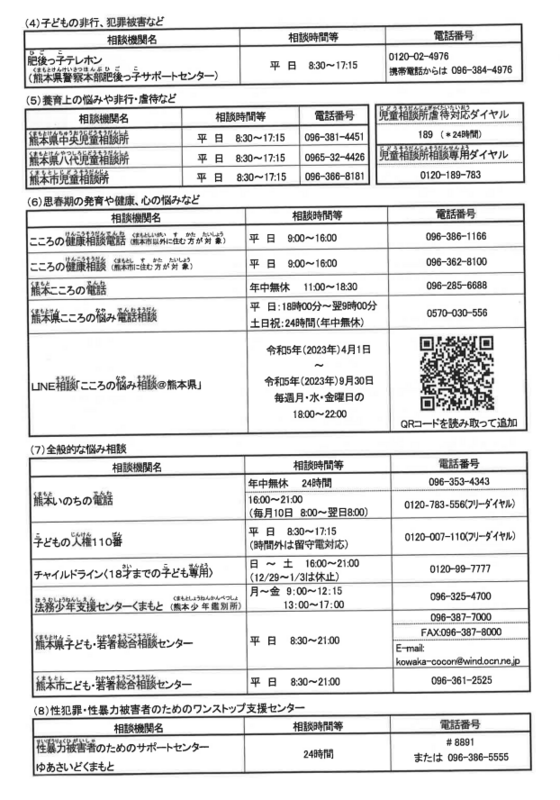 令和5年度版 困ったときの相談窓口のなかで、相談機関の再延長をお知らせします。