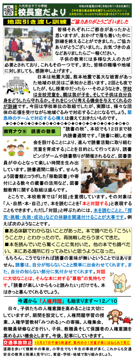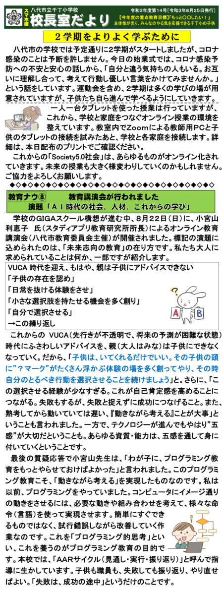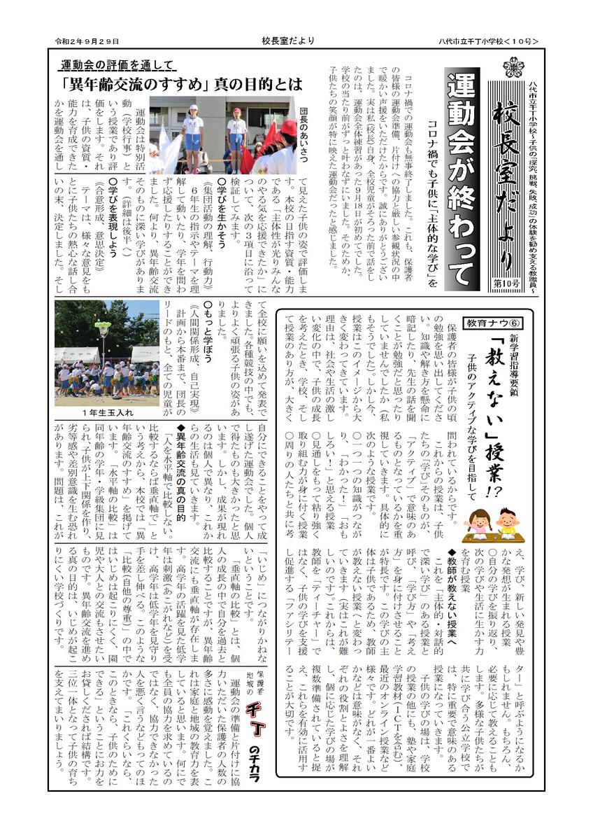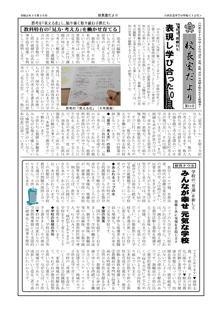 2学期末を予定していましたが、重要なお知らせを加えて早めに発行しました。