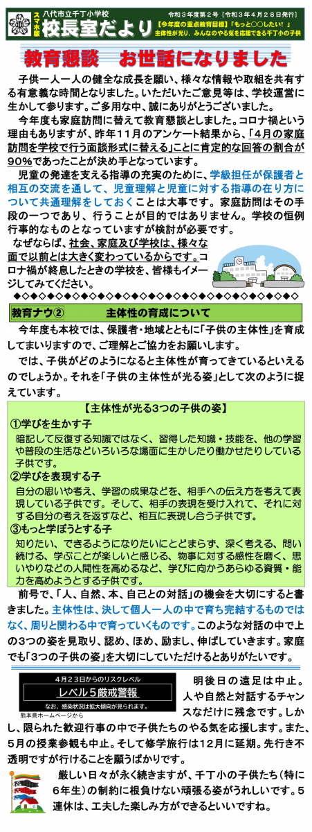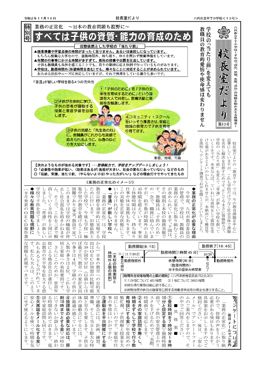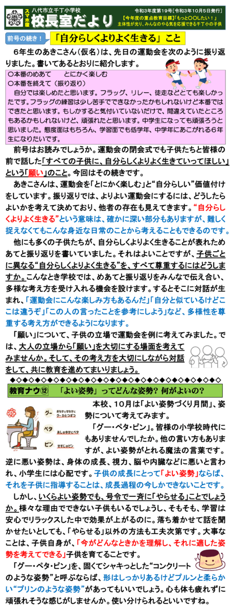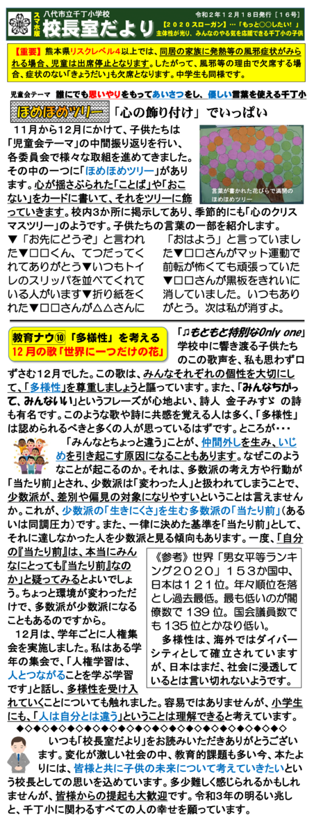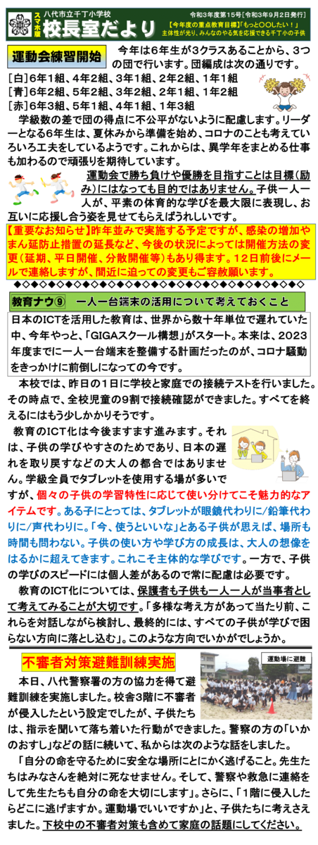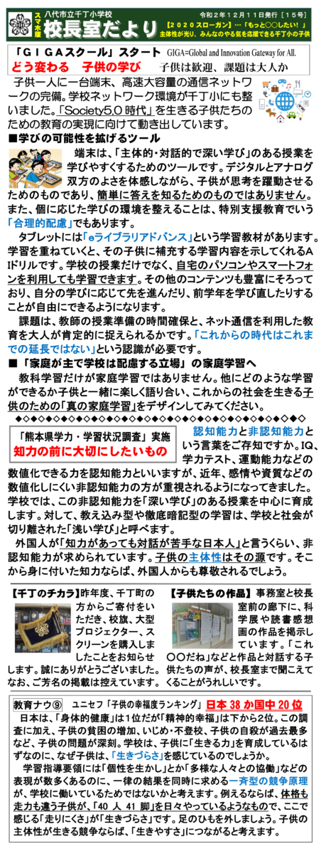 校長室便り<15号>(スマホで見やすくリニューアルしました。)