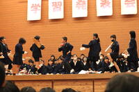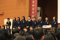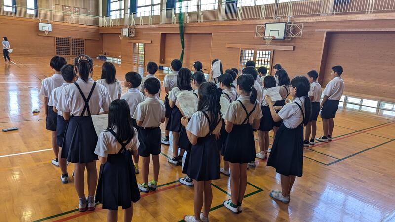 昨年度は、新型コロナ感染症の影響で、オンライン開催となりましたが、今年度は、全学年が体育館に集まり、発表することができました。