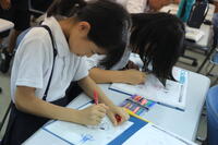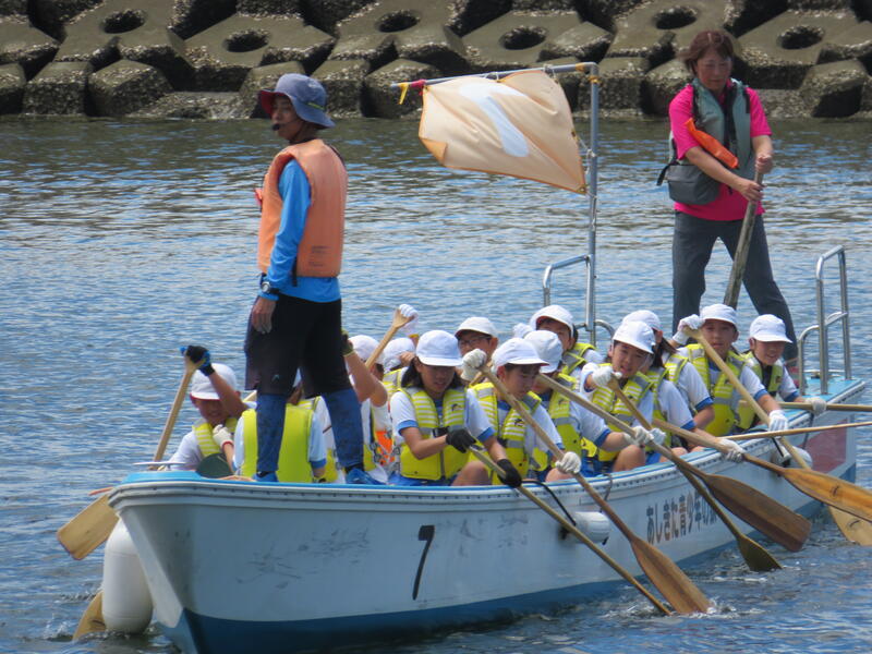 午前中はペーロンをしました。クラス毎にペーロン船に乗って、みんなで力を合わせて漕ぎました。青少年の家の方から提案された3つのコースの内、一番長いコースをしましたが、最後まで元気いっぱい漕ぐことができました。