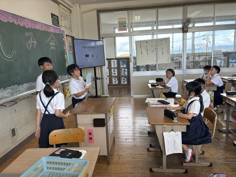 2年生の発表は、「2年生の1日」という題で、各教科で学んだことを発表しました。2✕9=(にく食べたい!)ではありませんよ!
