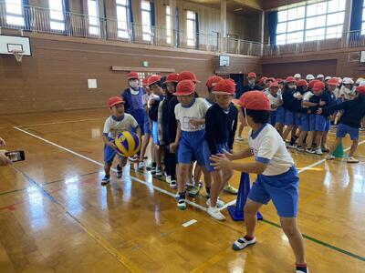 2学期が始まってから、1年生は跳び箱遊びをしています。まだまだ暑い日が続いていますが、1年生は元気いっぱいです。体慣らしで、かえるの足うちやウサギ跳びをした後、跳び箱に乗ったり、跳び箱からジャンプしたり、汗いっぱいかきながら楽しんでいます。