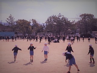 全クラスの子どもたちが昼休みに縄跳びをしました。