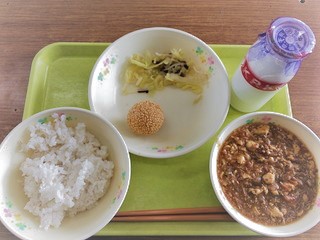今日の給食は麻婆豆腐やごま団子がおいしかったですね!