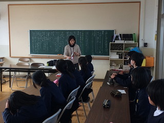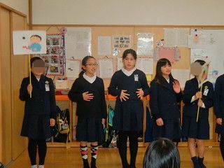 今日は6年生が千丁中説明会にいきました。英語の授業でジェスチャーをしている様子です。