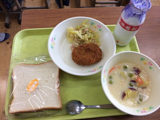 今日の給食はカボチャのコロッケが出ました。おいしかったですね!