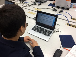 また、4年生の社会の調べ学習では担任とICT支援員の先生でパソコンの使い方を教えていました。