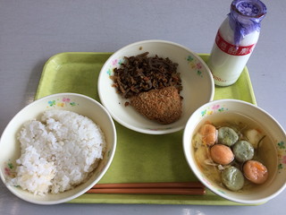 今日の給食はすき焼き風煮が出てきました。おいしかったですね!