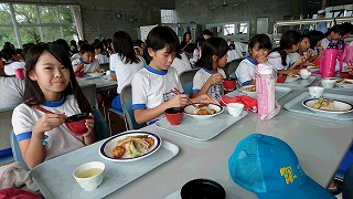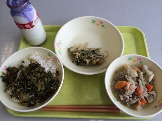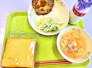 今日の給食は味噌汁が具だくさんでおいしかったですね!