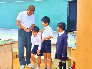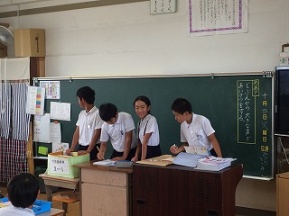 外国語活動では夏休みについてのお話を興味を持って聞く姿が見られました。