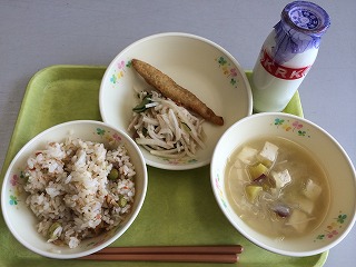 今日の給食は芋の混ぜご飯でした。とてもおいしかったですね!