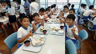 今日の給食は焼き肉でした。スタミナがつきますね!