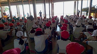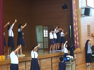 3番は全員で歌いました。まだまだ暑いですが、元気いっぱいファイトでスタートしましょうね!
