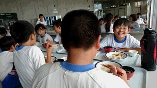 今日の給食は「だご汁」がでました。熊本産の米粉を使ったものです。おいしかったですね!