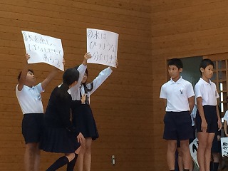 6年生の発表にはクイズがありました。みんな手を積極的に挙げて参加していました。