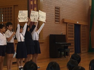 生活安全委員会から挨拶や廊下の通り方についての発表がありました。