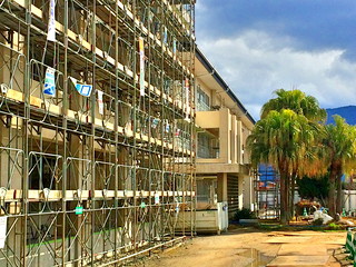 今日の様子です。足場もほぼなくなり、新しい学校の姿が見え始めました。