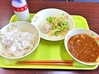 今日の給食は麻婆豆腐と餃子でした。おいしかったですね!