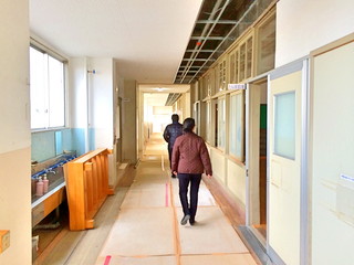 学校を案内している様子です。