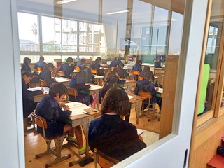 体育館が現在使えないために、教室でテストをしました。