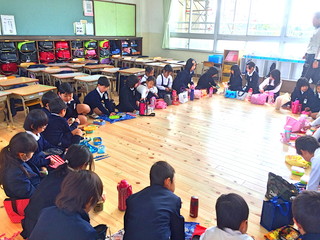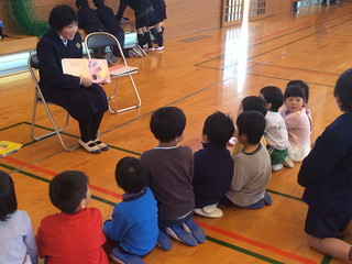 学校探検が終わったら読み聞かせをしました。