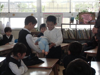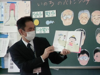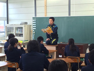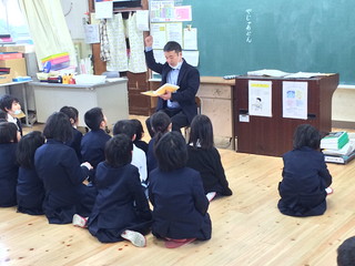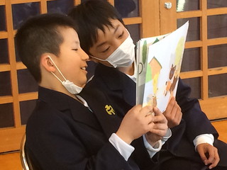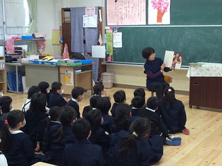 一年生の朝自習では六年生が読み聞かせをする様子が見られました。