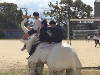 今日は雨も上がり、地震以来久しぶりに運動場で遊ぶ子どもたちの姿を見ることが出来ました。