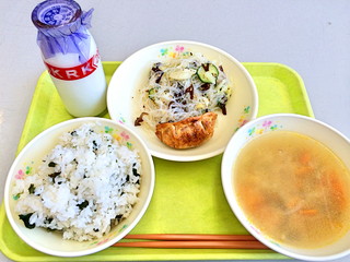 今日の給食は中華スープや餃子が出ました!おいしかったですね!