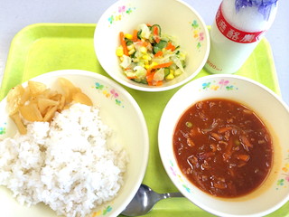 今日の給食はカレーでした!おいしかったですね!