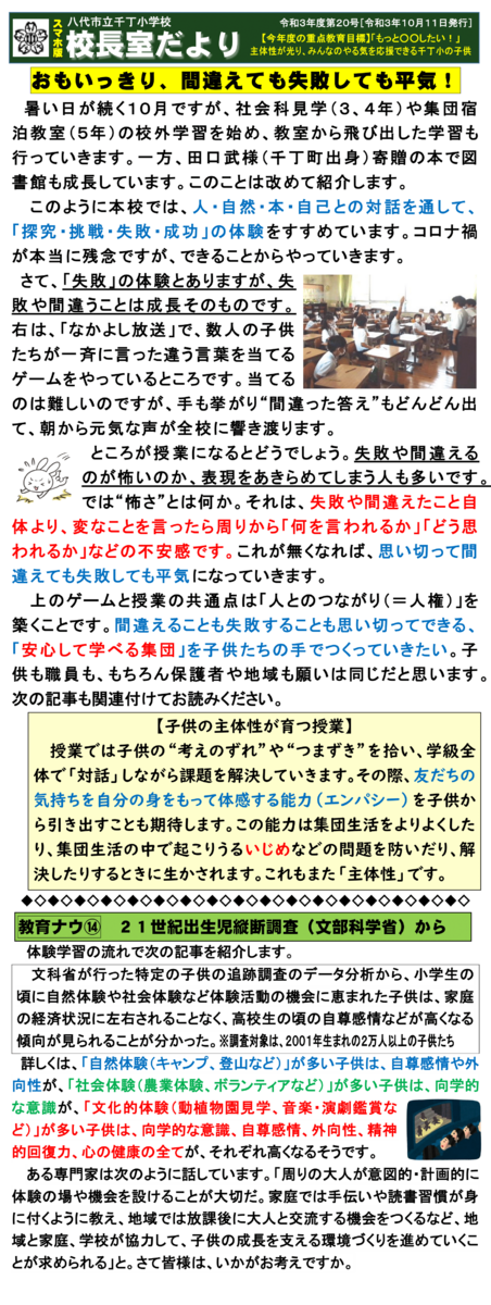 子どもたちの様子、学校からのお知らせなど随時紹介していきます。